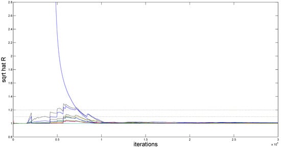 - Gelman, A.; Rubin, D.B. Inference from iterative simulation using multiple sequences. Stat. Sci. 1992, 7, 457–511. [Google Scholar] [CrossRef]