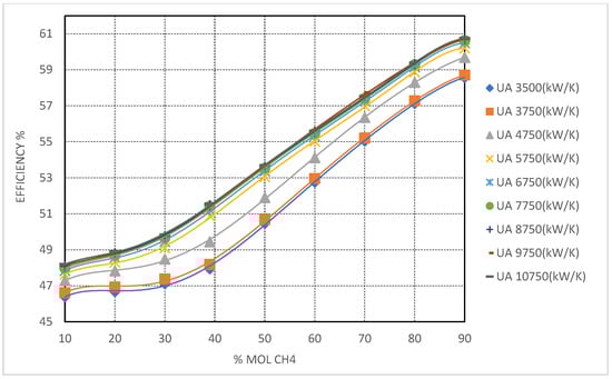 In contrast, the CO2/CH4 mixture exhibits a continuous decline in critical density with increasing CH4 content, dropping below 200 kg/m3 at 90 mol% CH4. This substantial reduction presents engineering challenges, including elevated volumetric flow rates, larger compressor sizes, and higher flow velocities, which can increase pressure losses in piping and heat exchangers. Such effects may partially offset thermodynamic gains obtained from lower critical temperatures and pressures by introducing greater irreversibilities and larger component dimensions.