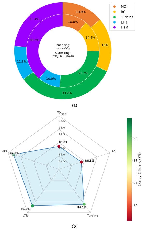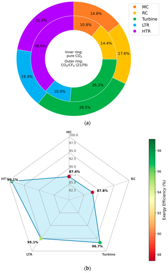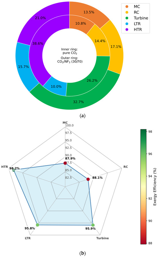 In summary, variations in critical entropy provide valuable insights into the influence of fluid composition on expansion dynamics, entropy production, and exergy performance. Thus, the selection of an optimal working fluid blend must account not only for thermodynamic advantages derived from lower critical temperatures, but also for entropy-related implications on turbomachinery design, recuperator integration, and overall cycle controllability.