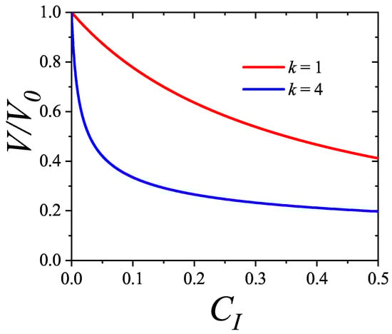 Similar to the BET model, the dimer isotherm can also be written in a quasi-linear form. Using , where v is the volume of gas adsorbed and represents the monolayer capacity, we obtain an expression from Equations (25) and (26) that corresponds to the dimer-based multilayer adsorption,