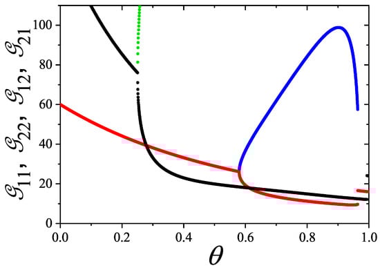 Only one of the solutions of Equation (17) remains due to physical reasons (),