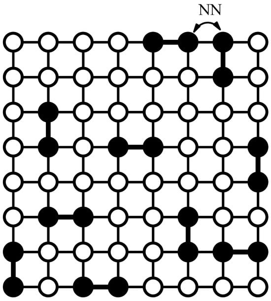 Although numerous studies have explored the adsorption of polyatomic species on discrete lattice structures, several important issues remain unresolved. Even though the theoretical framework for such problems is well-defined, obtaining exact analytical solutions for systems of correlated adsorbates, such as k-mers, has historically proven to be a major challenge. Exact results are largely confined to one-dimensional systems [20], with only a few known configurations in higher dimensions yielding tractable solutions. A well-known case is the dimer lattice–gas model (), which has been extensively analyzed in the literature [2,21,22,23,24,25,26,27,28]. For a comprehensive review on the entropy associated with close-packed dimers on two-dimensional lattices, see Ref. [29].