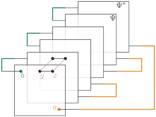 Moreover, the graph , as represented in Figure 13, factorizes as follows: