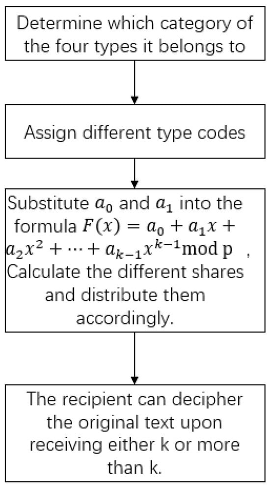 The Shamir secret-sharing scheme (SSS) [6,7] is a distributed cryptography protocol based on polynomial interpolation, which was proposed by Adi Shamir in 1979. The core idea is to divide the secret into multiple shares and ensure through a threshold mechanism that the secret can only be recovered when a sufficient number (threshold) of shares are collected. The core concept of the scheme is described below: