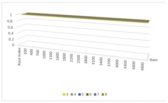 For the experiment on special irrational numbers, we selected a total of 200 special irrational numbers to satisfy general conditions. These included decimals, fractions, integers, and negative numbers (if applicable when the root index is odd). For example, , , and were demonstrated. Below, we will demonstrate the secret processes of special irrational numbers using as an example.