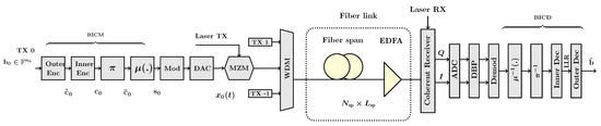 - i Amat, A.G.; Liva, G.; Steiner, F. Coding for optical communications—Can we approach the Shannon limit with low complexity? In Proceedings of the 45th European Conference on Optical Communication (ECOC 2019), Dublin, Ireland, 22–26 September 2019; pp. 1–4. [Google Scholar] [CrossRef]