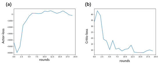 Loss curves during the training process. (a) The actor loss exhibits a three-phase convergence pattern: significant fluctuations during the initial random exploration phase, a rapid increase during the policy optimization phase, and eventual stabilization near zero. (b) The critic loss decreases from a high level to low-amplitude fluctuations as the value function fitting accuracy improves, reflecting the progressively improving accuracy of state-value estimation.