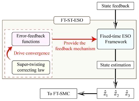 Active disturbance rejection control (ADRC), introduced by Han, compensates for multivariable coupling as disturbances via a nonlinear extended-state observer (NESO) [21,22]. To simplify tuning, Gao et al. developed linear ADRC (LADRC) [23,24]. More recently, fixed-time stability theory has been incorporated into ADRC: a fixed-time ESO in a voltage regulator achieved faster convergence and higher estimation accuracy than its conventional counterpart [25]. A missile flight controller used a fixed-time ESO to precisely estimate unknown acceleration disturbances [26]. In wheeled mobile robots, a fixed-time sliding-mode controller paired with a novel fixed-time ESO delivered global fixed-time stability and superior dynamic and steady-state performance [27]. The fixed-time sliding-mode controller offers fast convergence with a guaranteed upper bound on settling time, regardless of initial conditions, while remaining suitable for real-time implementation. Combined with a fixed-time ESO, it reduces noise and further boosts disturbance rejection, guaranteeing stabilisation within a fixed time [26,27].