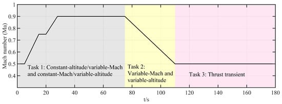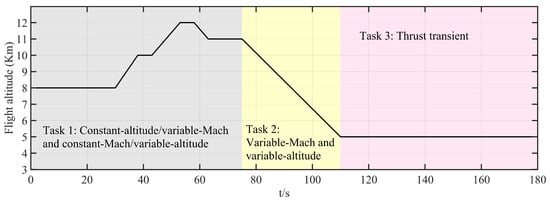 In HIL simulations from 0 to 110 s, the control system was tested on constant-Mach-number ascent/descent, level-flight acceleration, and deceleration–descent tasks. These scenarios validate the algorithm’s ability to perform real-time, cooperative decoupling control of front-chamber temperature and pressure.
