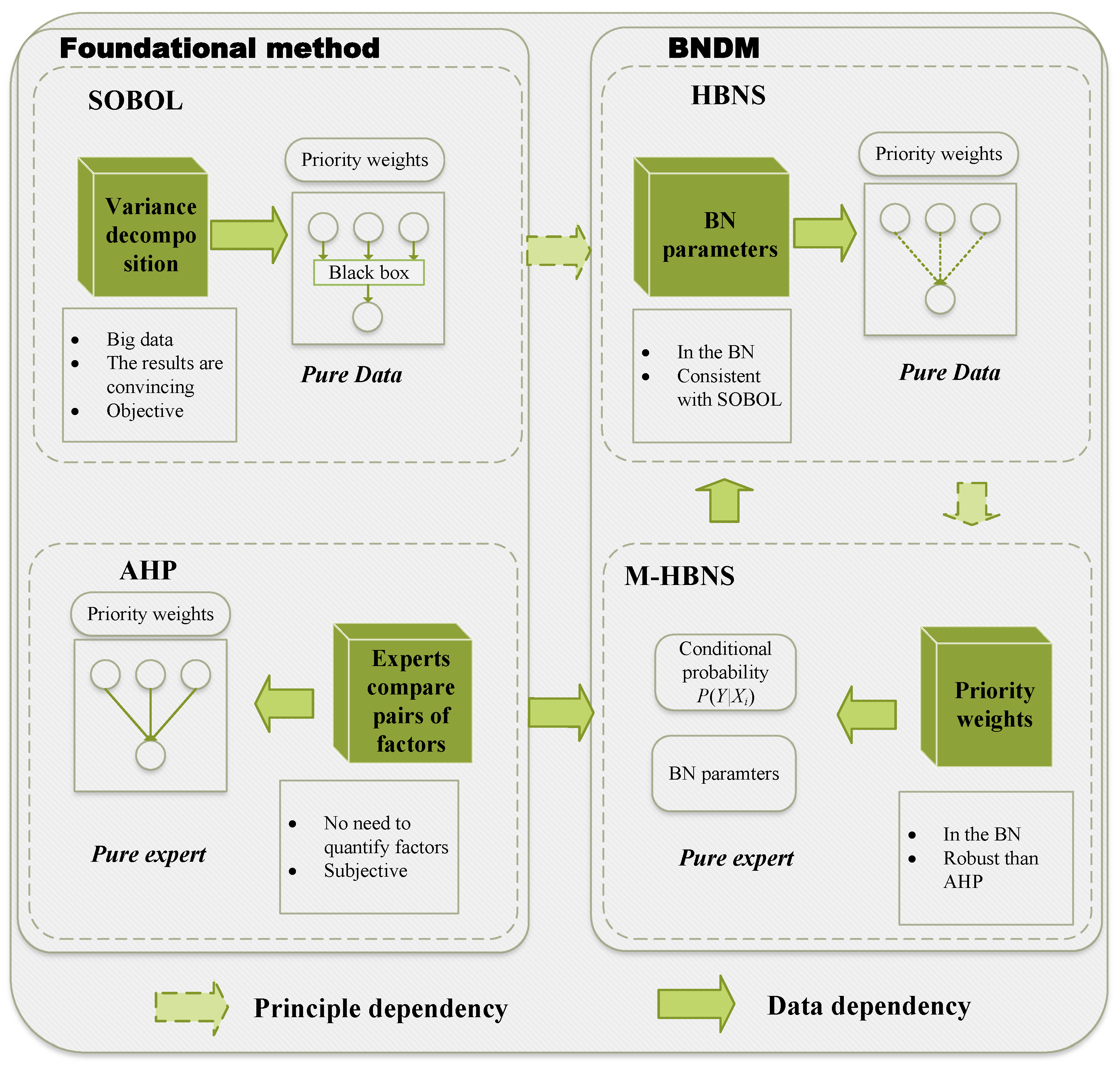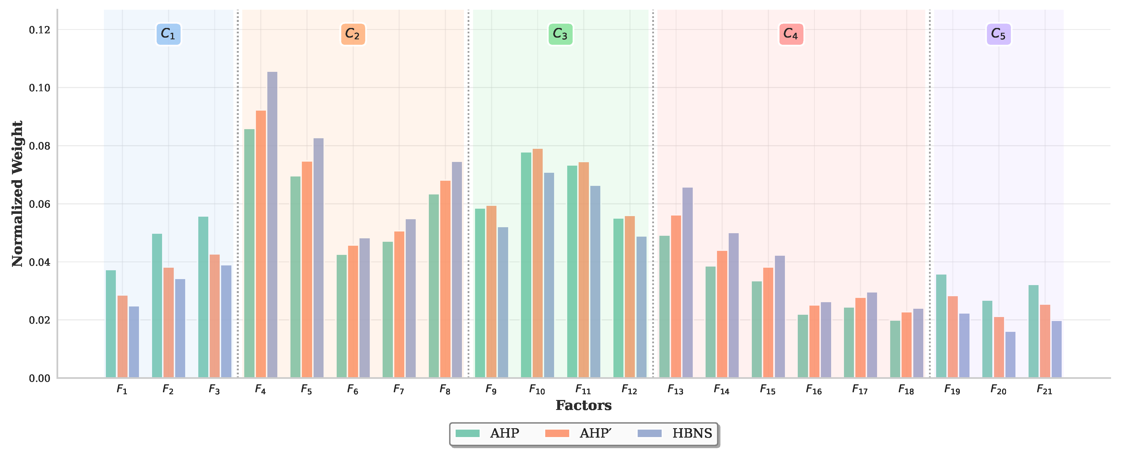 Definition 1. The weight measures the relative importance of the factors. AHP applies expert intuition to access , and HBNS introduces conditional variance to obtain . Their mapping relationship is expressed by (