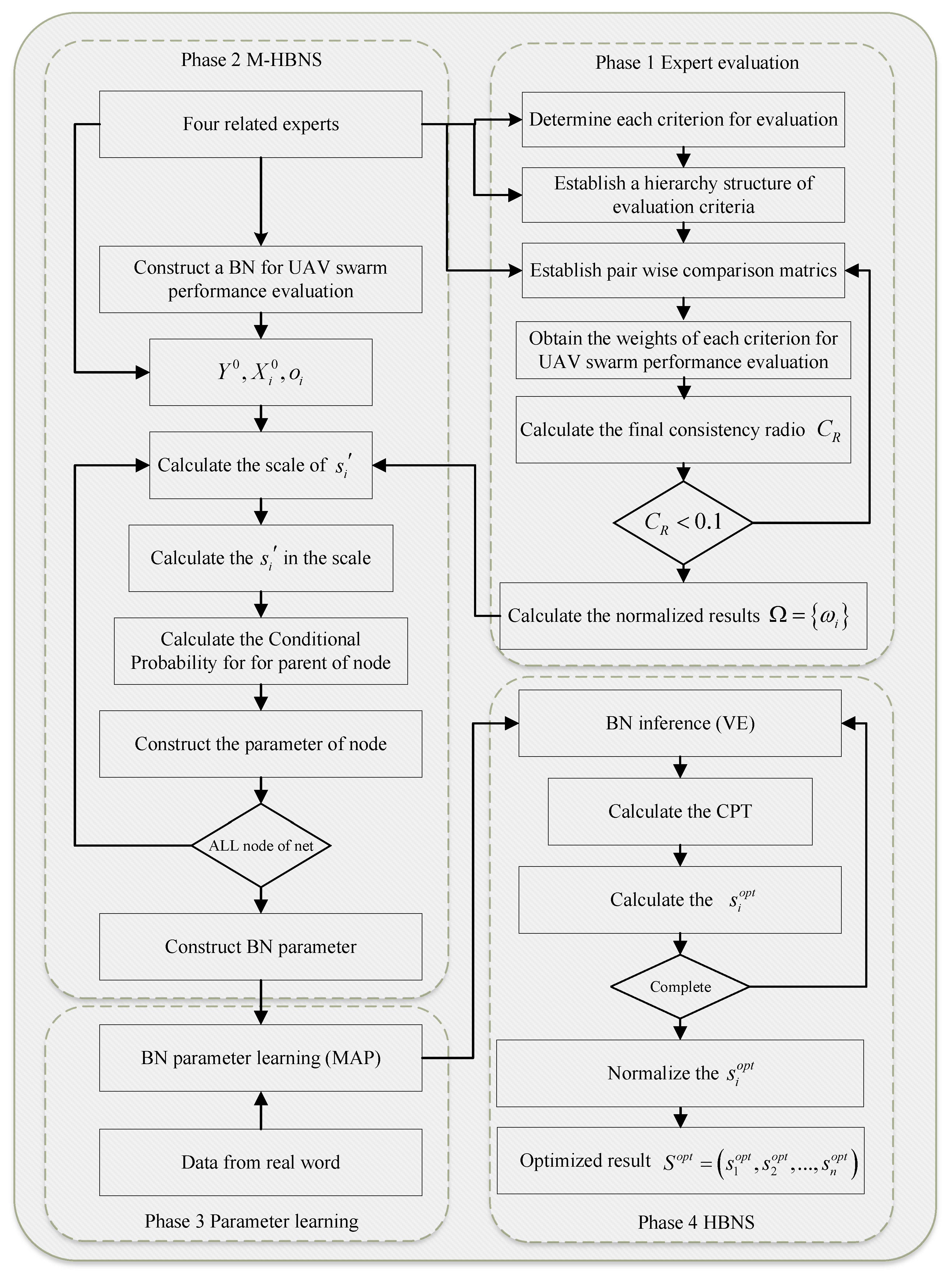 Figure 5. The multi-phase BNDM procedure detailed above outlines a systematic workflow for integrating expert knowledge with empirical data to produce a refined assessment of UAV swarm performance factor sensitivities. Theorem 4 provides a formal aggregation of this entire process, illustrating how initial expert judgments (represented by weights