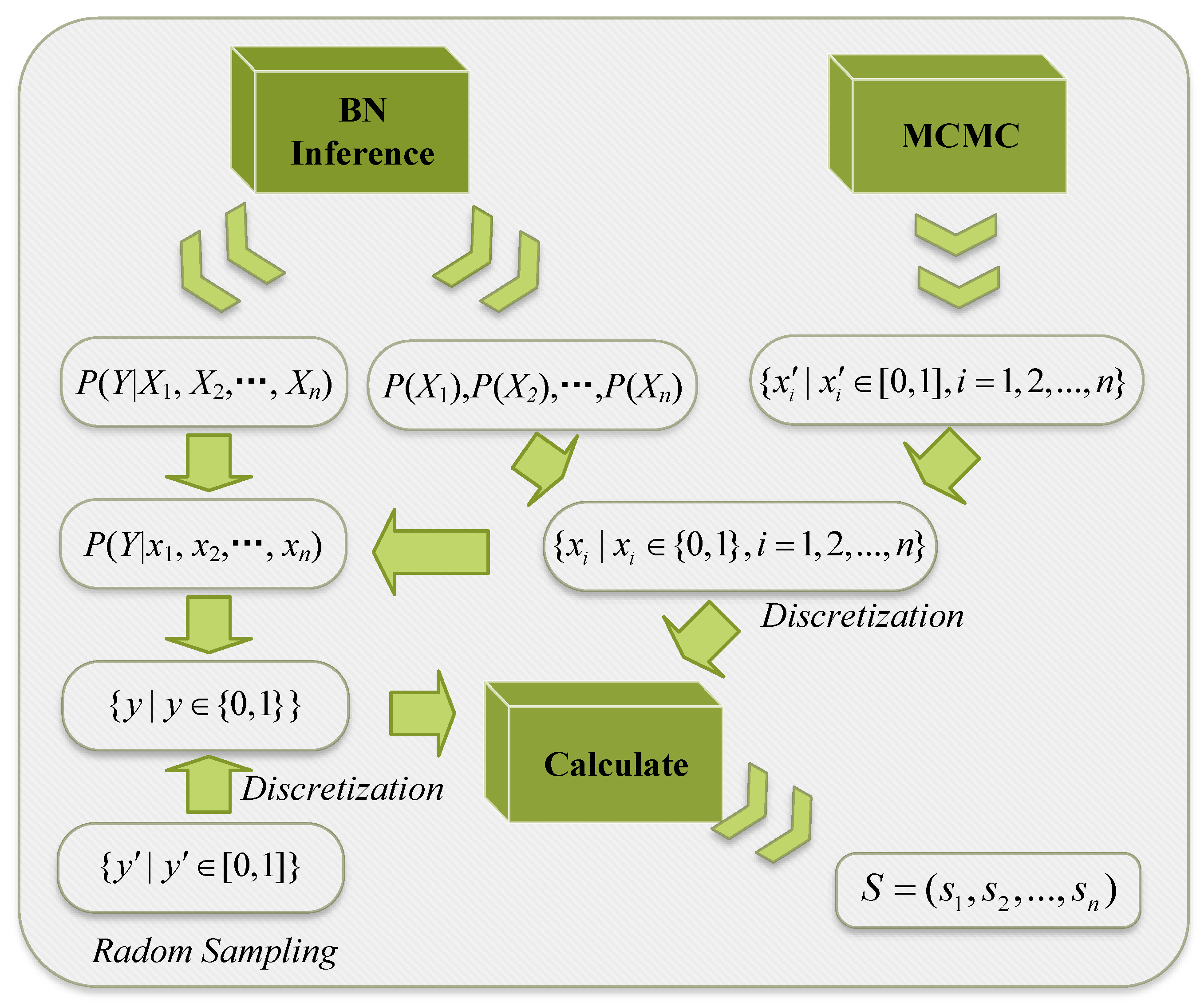 : Let be the set of these updated CPTs. Finally, the optimized sensitivity indices are derived from the data-updated BN using the HBNS operator H (Theorem 2): Thus, the entire BNDM process can be viewed as an overarching function B: This demonstrates the framework’s capacity to integrate expert intuition () with empirical data (D) within a unified Bayesian pipeline to produce refined sensitivity assessments.