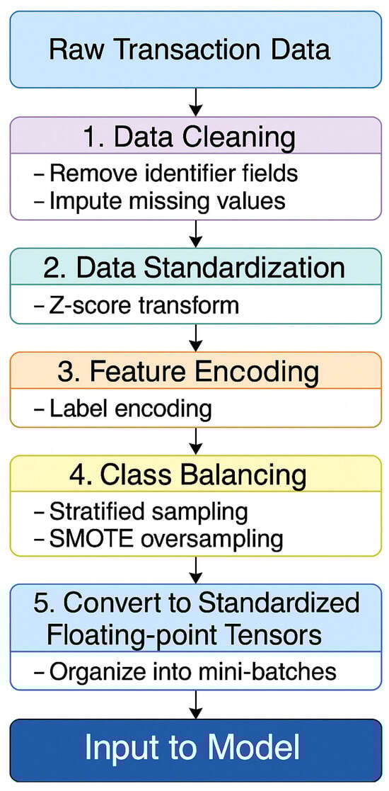 Recent advancements in machine learning have significantly improved performance in fraud detection tasks. For example, Xie et al. [] introduced a transaction behavior representation learning framework that leverages a spatiotemporal joint model to extract fine-gained behavioral features, thereby enhancing the identification of latent fraudulent activities. To address issues related to class imbalance and the scarcity of labeled fraud instances, Zhu et al. [] proposed adaptive optimization methods that combine feature selection with data sampling strategies, effectively reducing detection bias and improving model robustness.