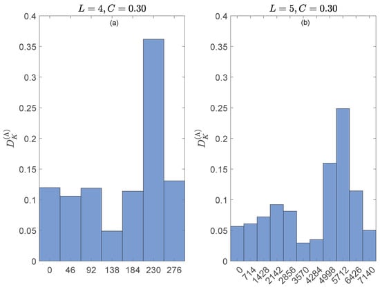 as exemplified in Equation (7) for . Due to the positivity and symmetry properties of a distance, the distance matrix is symmetric, with 0’s along the diagonal.