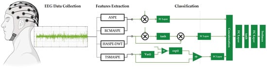 - Li, J.; Feng, G.; Ling, C.; Ren, X.; Liu, X.; Zhang, S.; Wang, L.; Chen, Y.; Zeng, X.; Chen, R. A resource-efficient multi-entropy fusion method and its application for EEG-based emotion recognition. Entropy 2025, 27, 96. [Google Scholar] [CrossRef]