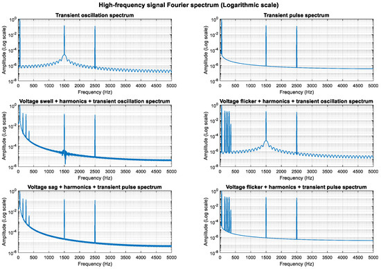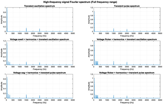 According to the mathematical model, voltage oscillation is a high-frequency signal that undergoes additional attenuation during disturbance. It is characterized by its distribution near the oscillation frequency band and amplitude changes within this band. In contrast, voltage pulses are formed by superimposing multiple AC and DC components onto a normal signal, resulting in a wide-spectrum signal with frequencies ranging from extremely low to extremely high [37].