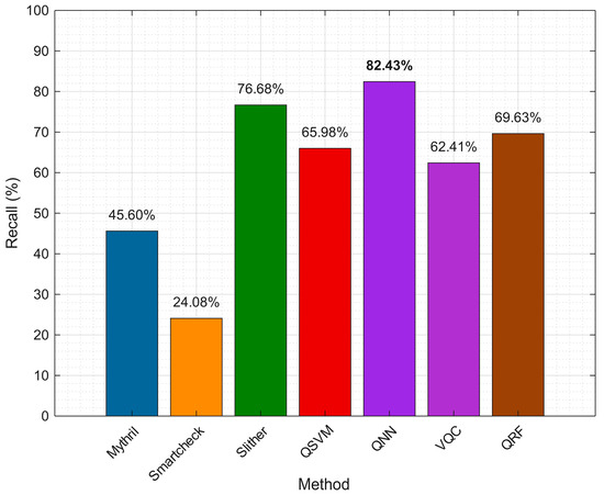 - Employing QML models for detecting liabilities in smart contracts on a larger scale would be beneficial. Non-uniform lengths of contracts were analyzed effectively using QML algorithms, especially by the quantum neural network (QNN) approach, thus solving the problem of inconsistent input lengths. Also, vulnerabilities were detected in batches using these QML algorithms, reflecting the capability of batch processing.
