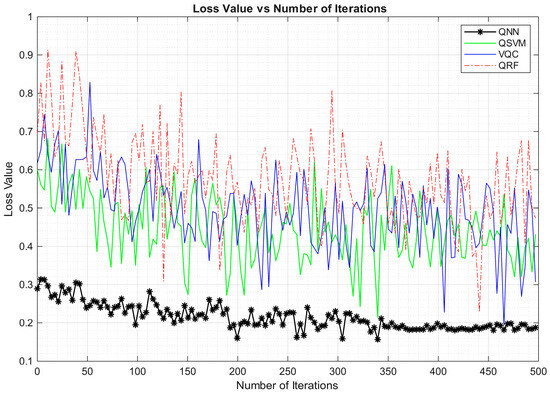 - VQC: VQC is a variant of QNN employed for supervised learning. It optimizes the quantum circuit and minimizes the loss metric represented in triplet notation [89]: