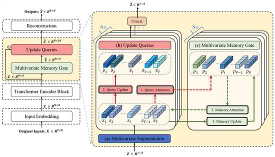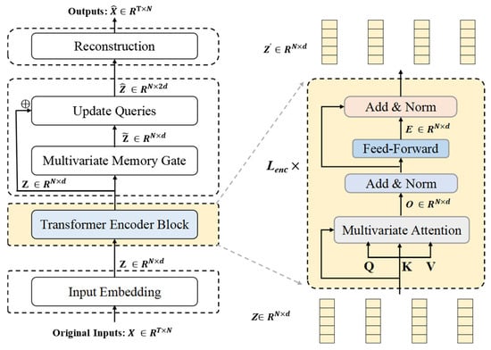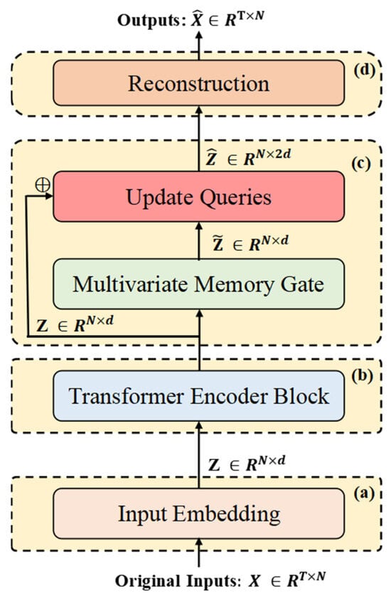 Figure 1 illustrates the overall architecture of ITMMG. The framework comprises four core components: (1) multi-dimensional time series embedding, (2) Transformer encoder, (3) multivariate memory gate, and (4) reconstruction decoder.