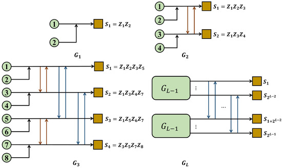 In our previous work [25], we propose a new class of quantum stabilizer codes named the Z-TGRE code, which is obtained by recursively expanding a Tanner graph, and it has a constant coding rate of 0.5 but can only correct Pauli-X and -Y errors. The way to expand the Tanner graph of the Z-TGRE code is shown in Figure 1.