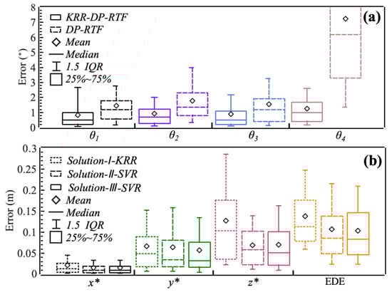 Table 3, Table 4 and Table 5 show the of the regression models for each solution. For Solution-I, the KRR model generally performed well. KRR achieved the highest for inferring the set parameters () , , and , and the for is also close to the optimal result of GBR. The KRR-based Solution-I (Solution -I-KRR) also exhibited optimal performance in inferring the source coordinates, with the highest for , , and . However, for Solution-II and Solution-III, the best-performing model was SVR (Solution-II-SVR and Solution-III-SVR), both for inferring the set parameters ( and ) and the source coordinates . The Euclidean distance error (EDE) is defined as