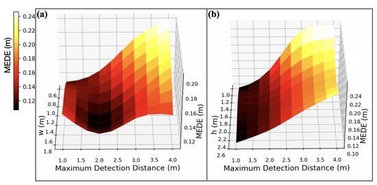 We have devised a localization method utilizing a 4-group, 8-microphone array to determine the 3D coordinates of a sound source in space based on DOA measurements, as illustrated in Figure 3a. Each pair of microphones forms a microphone group, with a spacing of d between them, used for DOA measurement. There are four groups of microphones, , and , arranged in a 2 by 2 matrix formation. The rows of the matrix align with the connecting lines of the microphone pairs, while the columns are perpendicular to these lines. The height of the microphone group matrix, h, runs parallel to the x-axis, and its width, w, runs parallel to the z-axis.