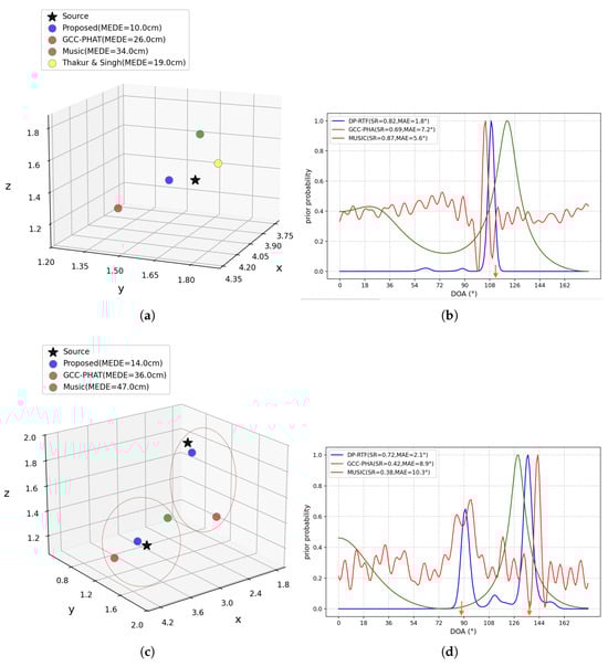 Accurate positioning is usually achieved through electronic device transmissions, such as global positioning system’s (GPS’s) National Marine Electronics Association (NMEA) [1,2], base station’s multi-in multi-out (MIMO) [3], Wi-Fi’s received signal strength indicator (RSSI) [4,5], and ultra-wideband (UWB) [6]. For indoor environments where obstacles limit the reception of GPS signals or when there are no communication devices available for transmitting messages, sound source localization (SSL) that does not rely on communication systems is considered a highly important technology for replacing electronic devices [7,8]. In industrial applications, sound source detection can be used for fault diagnosis and early warning systems [9,10,11,12]. In human–machine interaction, it is significant in allowing robots to perceive their environment, thus improving their interaction with humans [13,14,15,16]. Furthermore, it can be applied to the analysis of acoustic detection and speech enhancement, among other areas [17,18,19,20]. Therefore, developing accurate and efficient SSL technology is essential for these diverse applications.