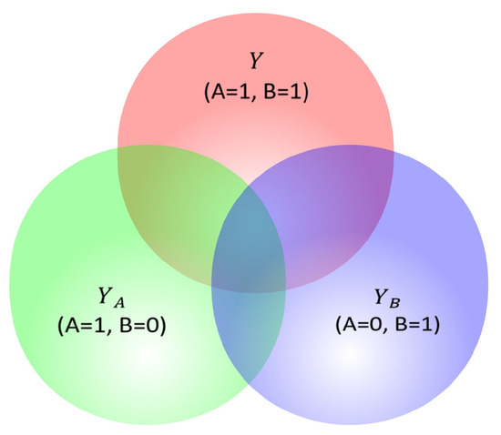 Here, we define the associated probabilities. Suppose , , and . Let , where n is the number of elements at the intersection of Y and . Let , where m is the number of elements at the intersection of Y and .