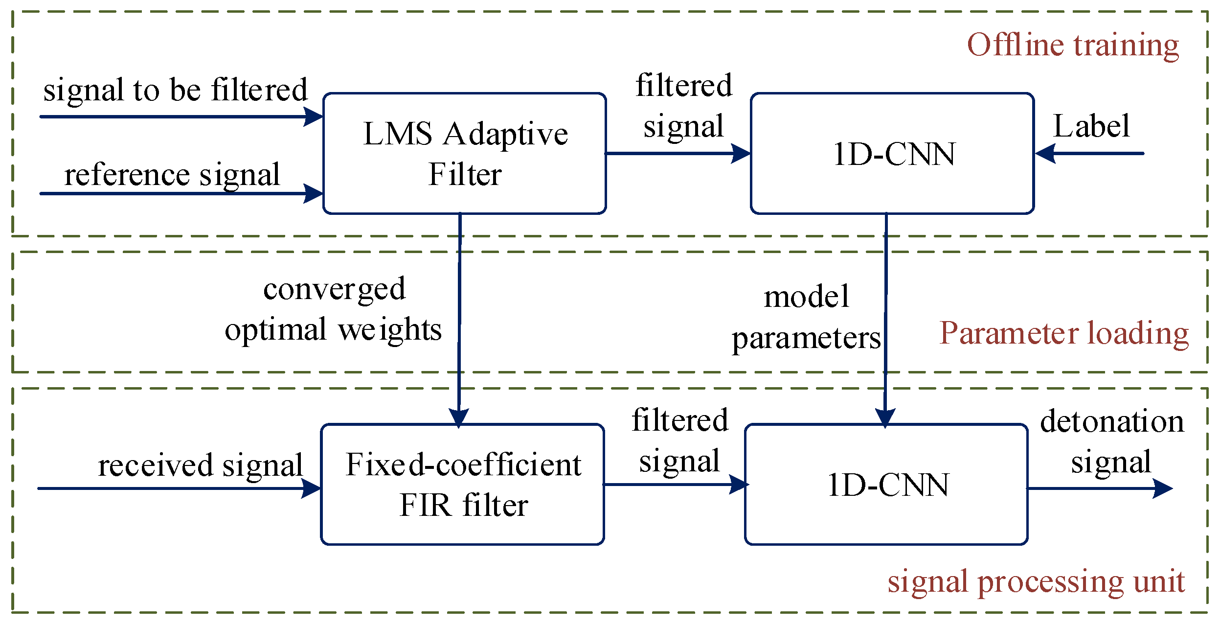 - Fuze detonation position: The system triggers the fuze immediately at the temporal position corresponding to the first segment classified as ‘Label 1’. The classification of all subsequent segments is irrelevant once the detonation signal is issued.
