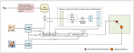- The combination of category name expansion and image feature augmentation: Based on traditional category name expansion, we incorporate specific sample image features to supplement the expanded content. By introducing image features, the semantic description of the categories becomes more precise and detailed, effectively improving the performance of multimodal few-shot learning.