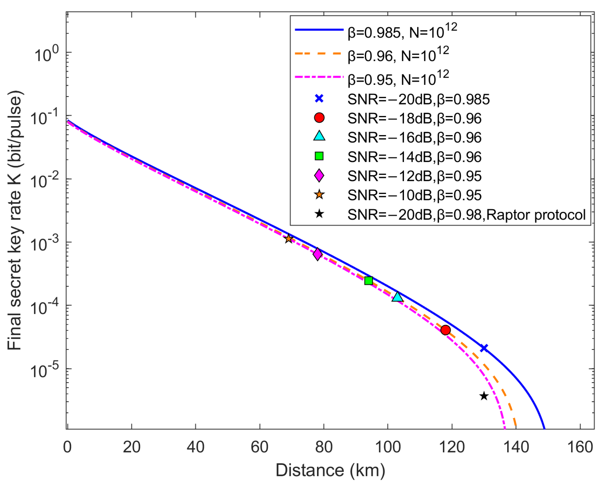 - Zhou, C.; Wang, X.; Zhang, Y.; Zhang, Z.; Yu, S.; Guo, H. Continuous-variable quantum key distribution with rateless reconciliation protocol. Phys. Rev. Appl. 2019, 12, 054013. [Google Scholar] [CrossRef]