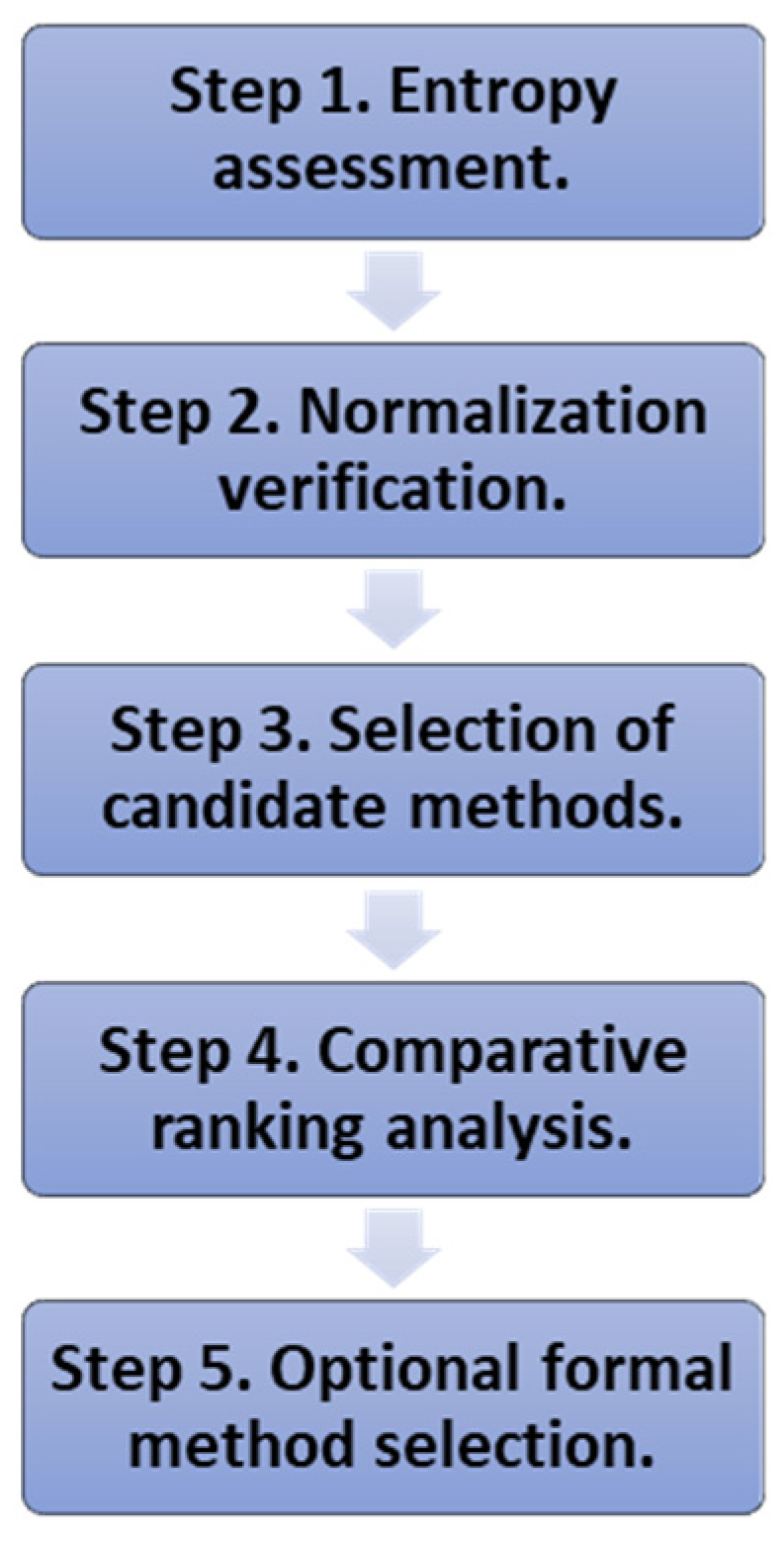 - Krishnan, A.R. Past Efforts in Determining Suitable Normalization Methods for Multi-Criteria Decision-Making: A Short Survey. Front. Big Data 2022, 5, 990699. [Google Scholar] [CrossRef] [PubMed]