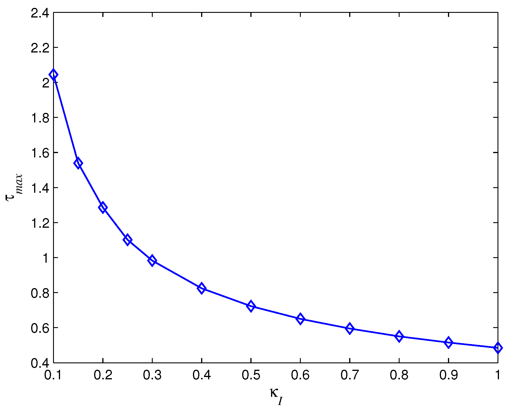 14) in Theorem 1. Generally speaking, increasing the time delay prolongs the convergence time and even leads to the oscillation and divergence (see