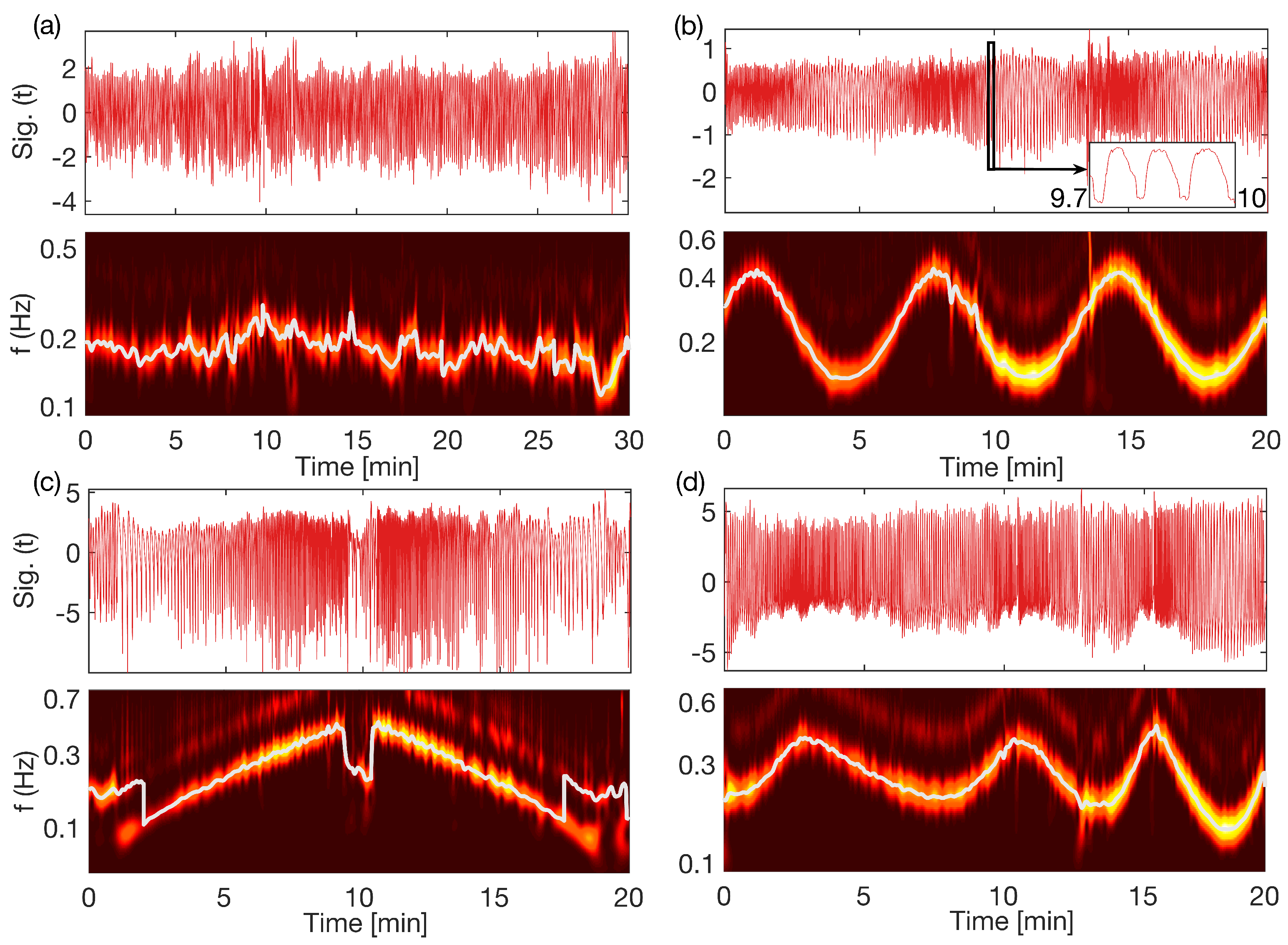 - Iatsenko, D.; McClintock, P.V.E.; Stefanovska, A. On the extraction of instantaneous frequencies from ridges in time-frequency representations of signals. Signal Proc. 2016, 125, 290–303. [Google Scholar] [CrossRef]
