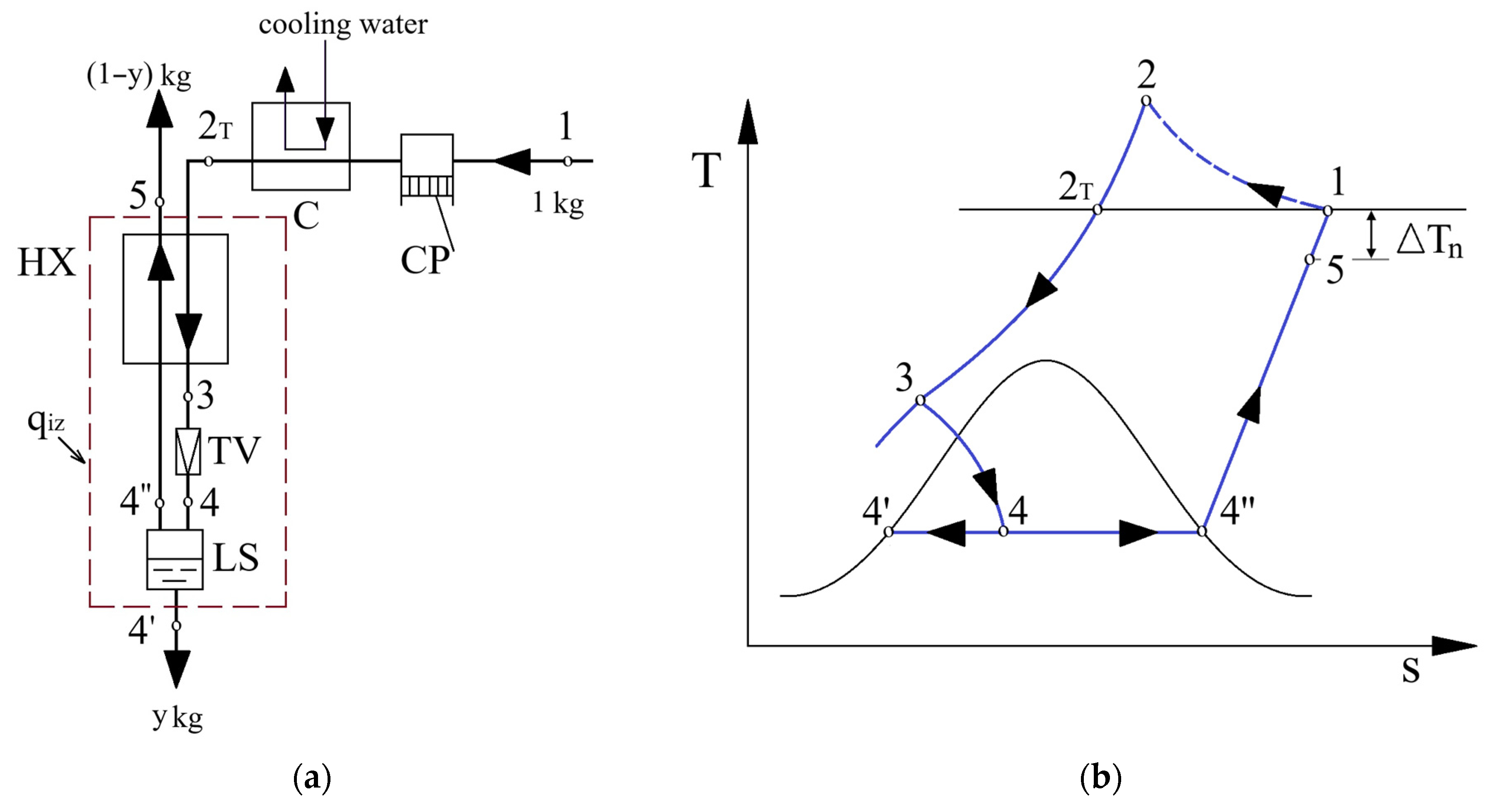 ) and in the heat exchanger, owing to heat transfer at a finite temperature difference (