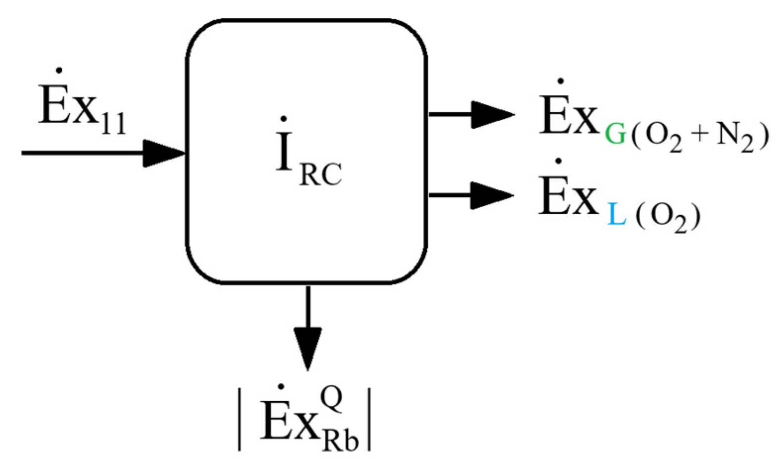 The exergy interactions of the rectification column with the external environment, corresponding to the configuration presented in