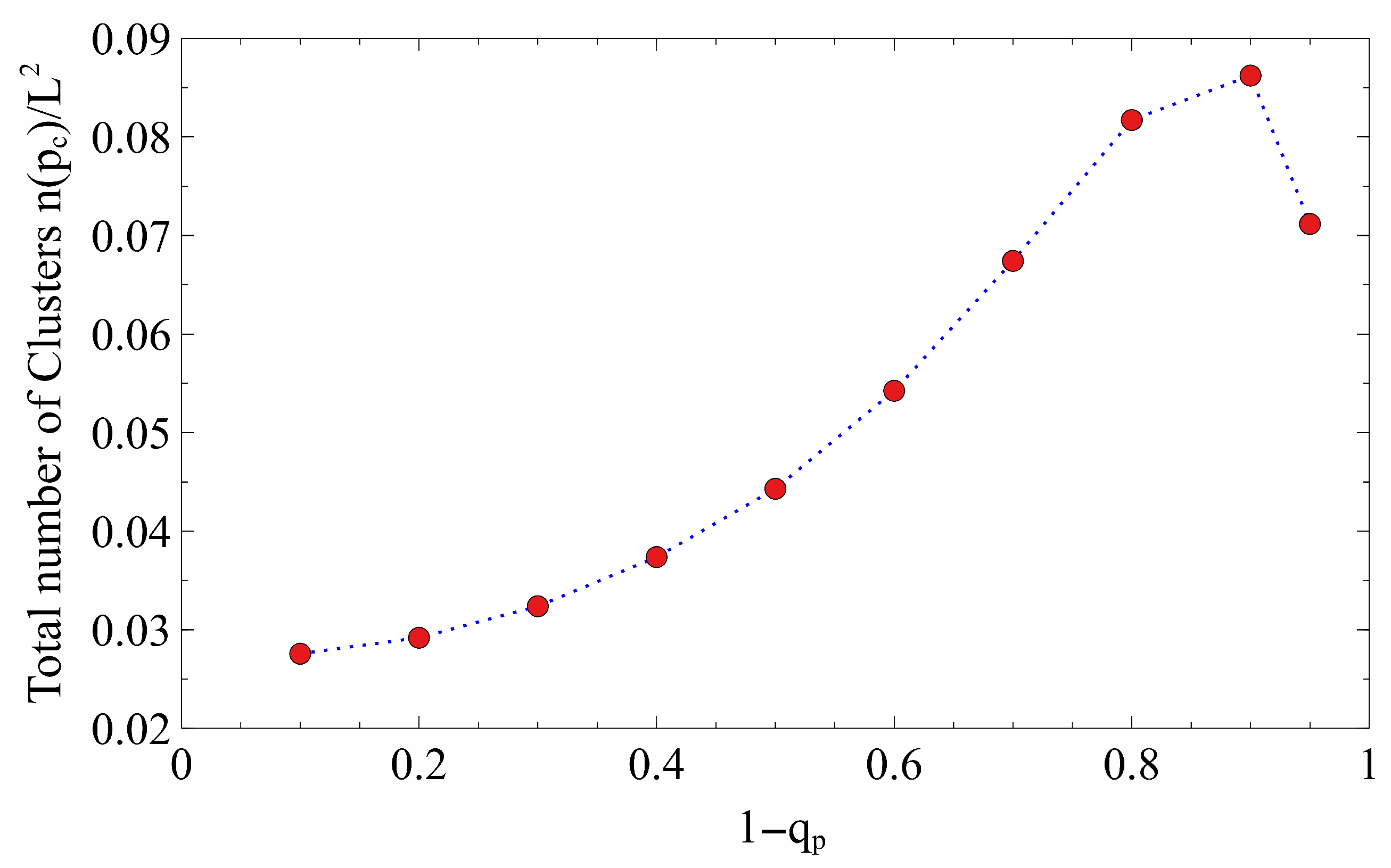 The total number of non-percolating clusters (normalized by the total number of sites),