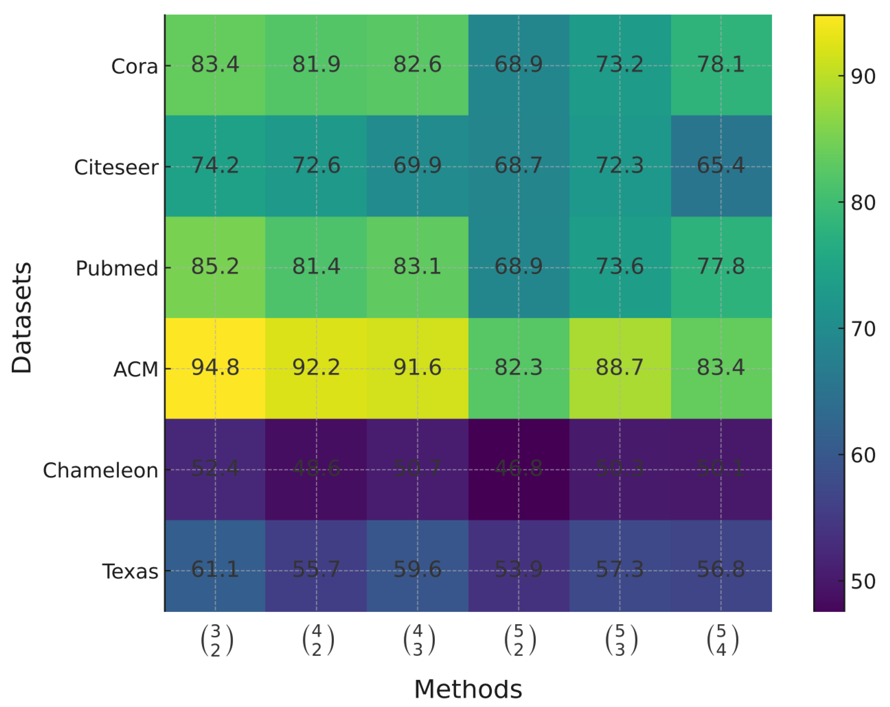50] were adopted from their respective original studies. The outcomes of semi-supervised node classification are compiled in