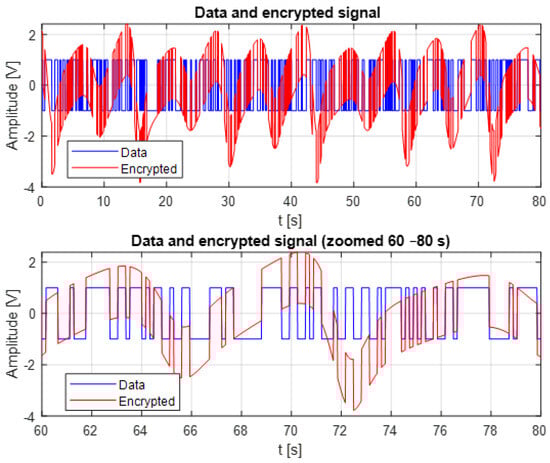 Figure 2 illustrates the chaotic masking strategy considered in this work. The master Sprott oscillator generates a chaotic carrier, to which the information signal is added.