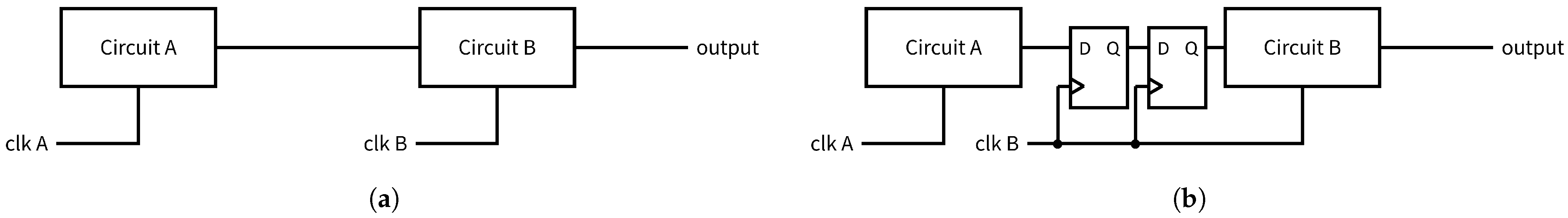 Digital logic typically operates only with {0, 1}, where binary states correspond to high/low voltage levels within the circuit. However, certain voltage values that do not fall within these high/low ranges may occur. We refer to this voltage state as an “intermediate voltage,” which can cause errors in correct computation within the circuit. To prevent such occurrences, it is necessary to implement synchronization circuits or design the circuit architecture with careful attention to timing constraints.