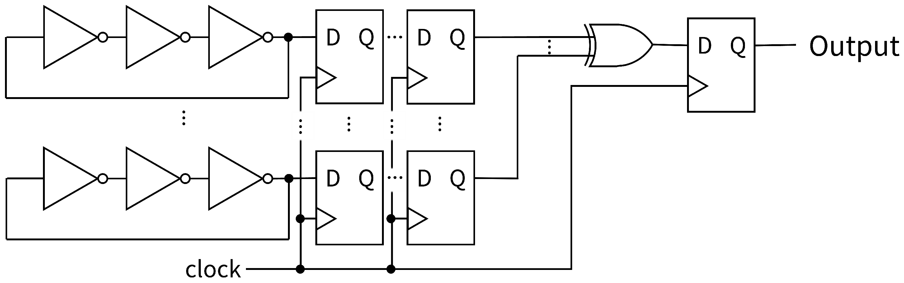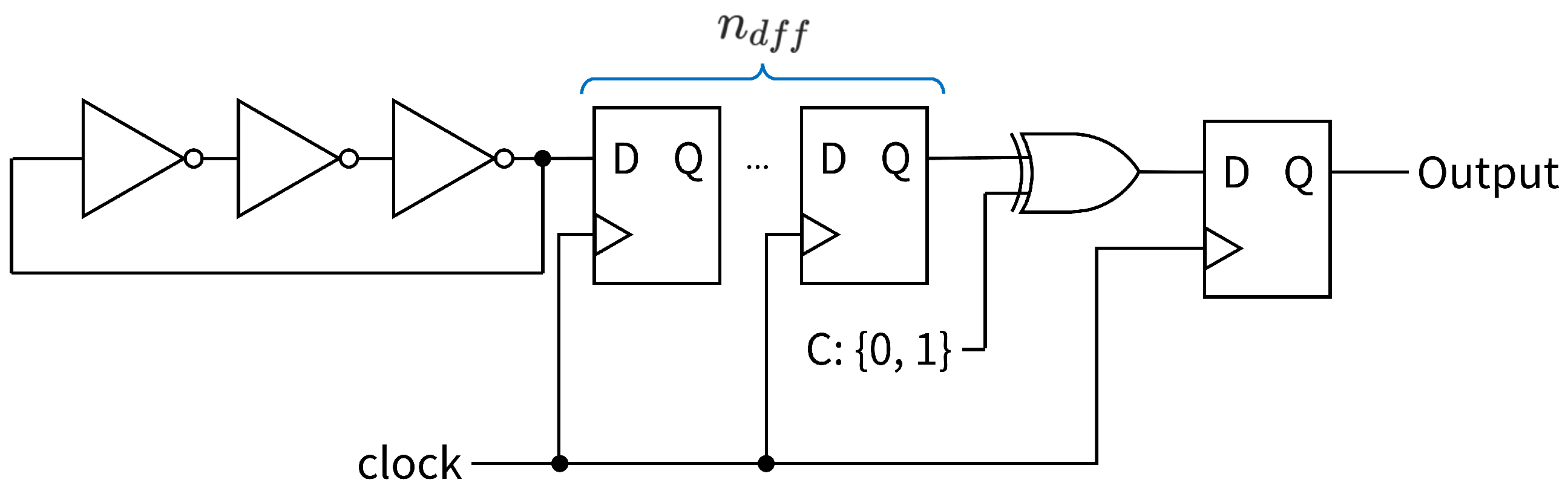 20] states that when using two D-FFs for synchronization, the probability of metastability occurrence is significantly reduced. This suggests that by connecting two D-FFs after an asynchronous RO, we can effectively suppress the probability