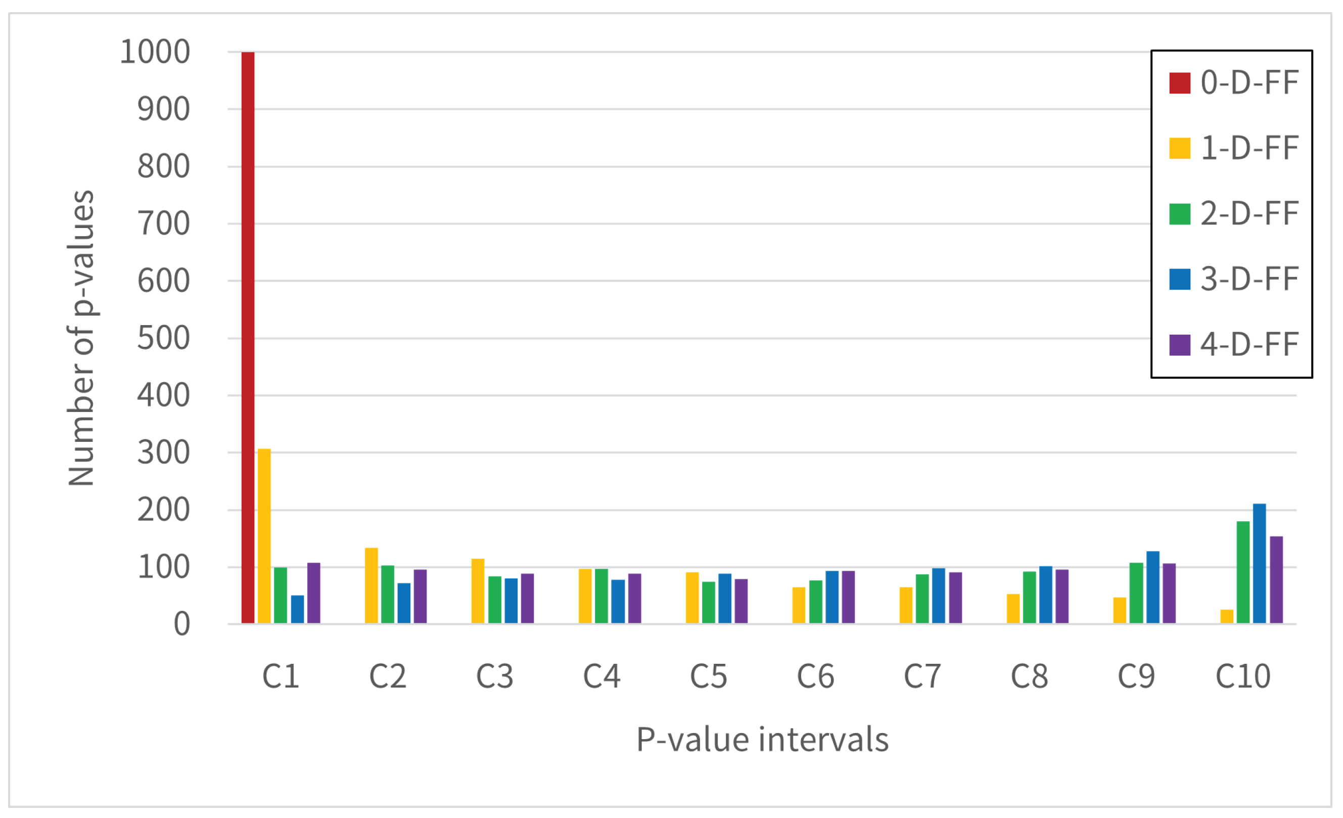 Section 3.2. Based on these results, we can hypothesize that applying multi-D-FFs to the RO-based RNG affects the bit distribution uniformity of the output random number sequence.