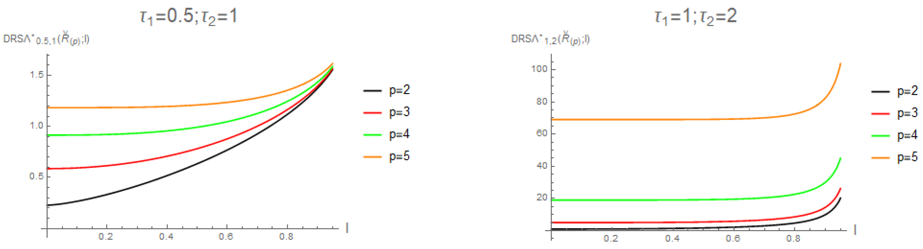 Definition 4. Let and be two non-negative continuous random variables with pdfs and , respectively. Then, we say that is smaller than in the sense of Sharma–Taneja–Mittal entropy, denoted as , ifwhere . Remark 2. The following results will be discussed under the conditions and for all . Moreover, these conditions hold for any other form of the pdf.