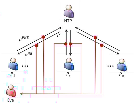 Quantum Users (HTP)—the honest third party (HTP) possesses full quantum capabilities (preparation, manipulation, and measurement). Assumption: In this semi-quantum model, the HTP is assumed to be a trusted authority. The HTP generates and measures states correctly and does not collude with bidders to reveal bids to others, although the HTP itself learns the bid values.