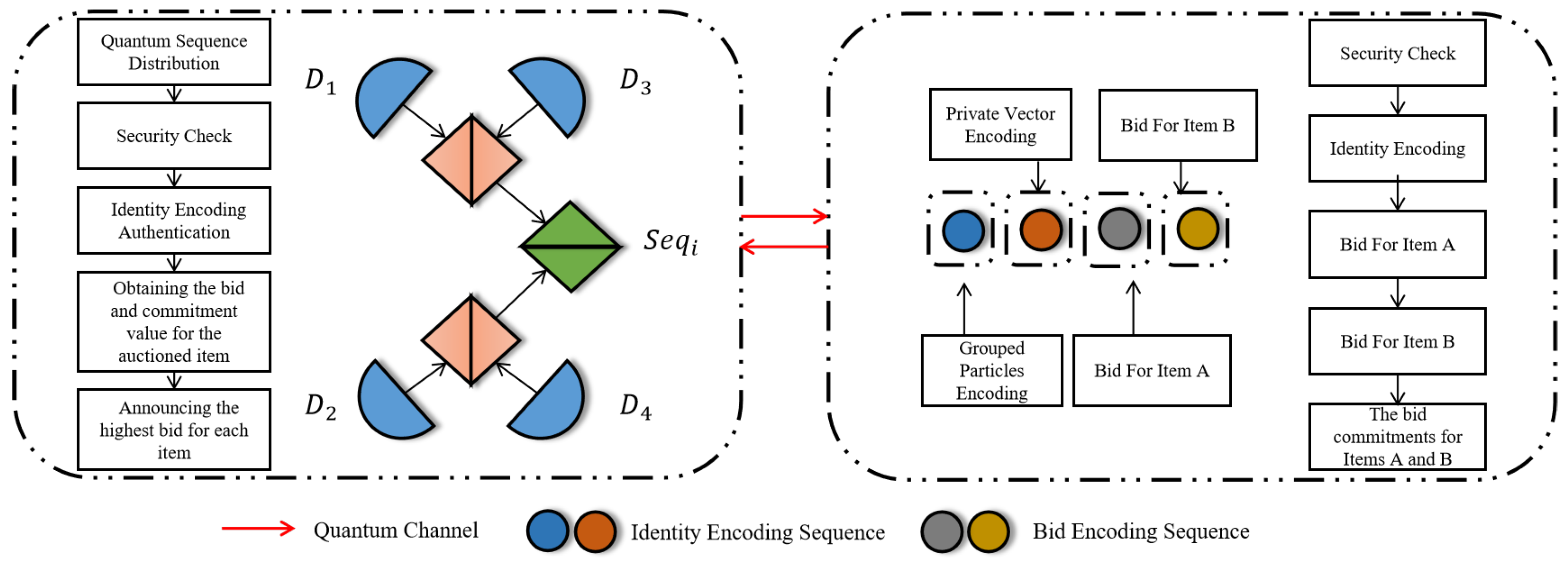 - Ye, C.Q.; Li, J.; Chen, X.B.; Dong, M.; Ota, K. Measurement-based quantum sealed-bid auction. IEEE Trans. Circuits Syst. I Regul. Pap. 2023, 70, 5352–5365. [Google Scholar] [CrossRef]