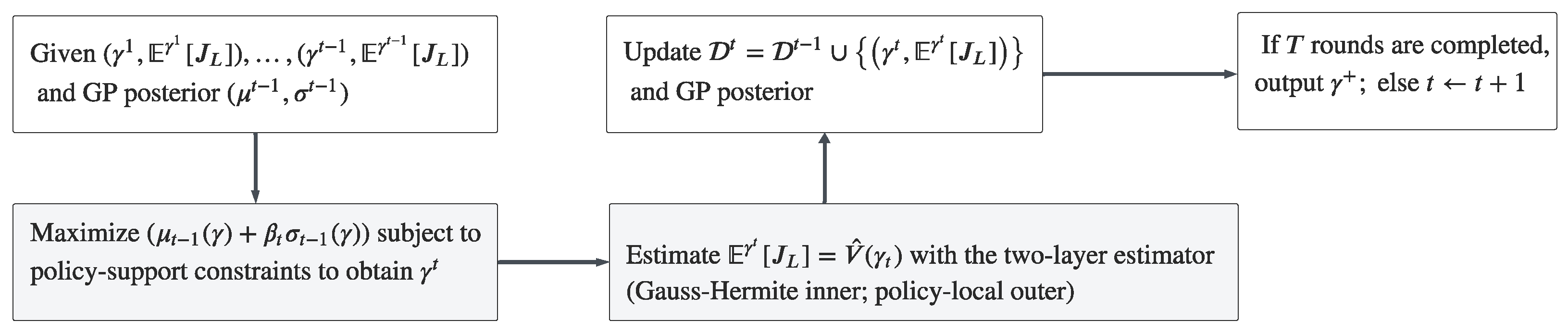 | Input : ; the specification; the horizon T; the functional GP kernel K on ; the exploration schedule ; and the CGM for a from the principal’s perspective. | ||