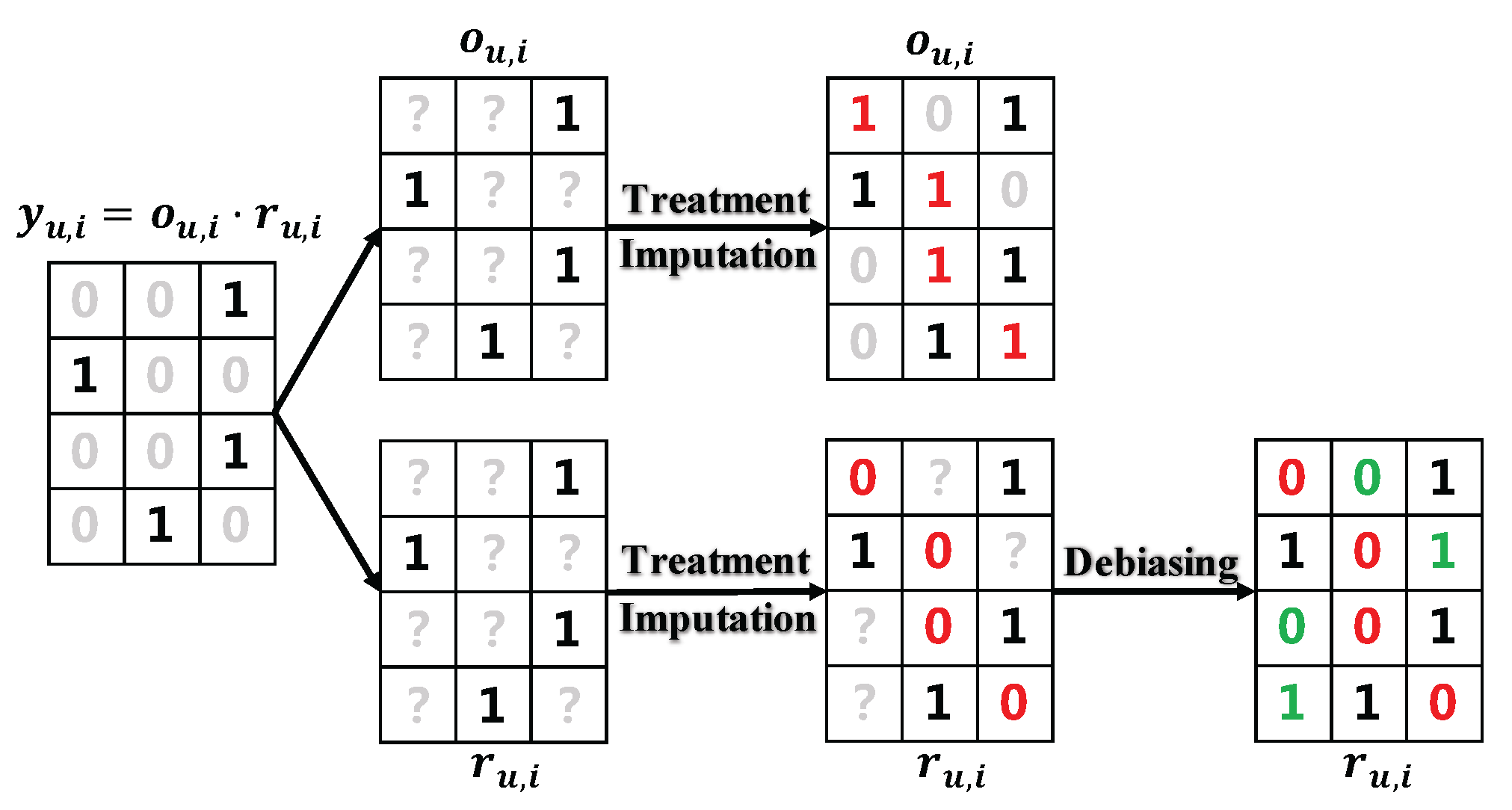 - Li, H.; Zheng, C.; Wang, S.; Wu, K.; Wang, E.; Wu, P.; Geng, Z.; Chen, X.; Zhou, X.H. Relaxing the accurate imputation assumption in doubly robust learning for debiased collaborative filtering. In Proceedings of the Forty-First International Conference on Machine Learning, Vienna, Austria, 21–27 July 2024. [Google Scholar]