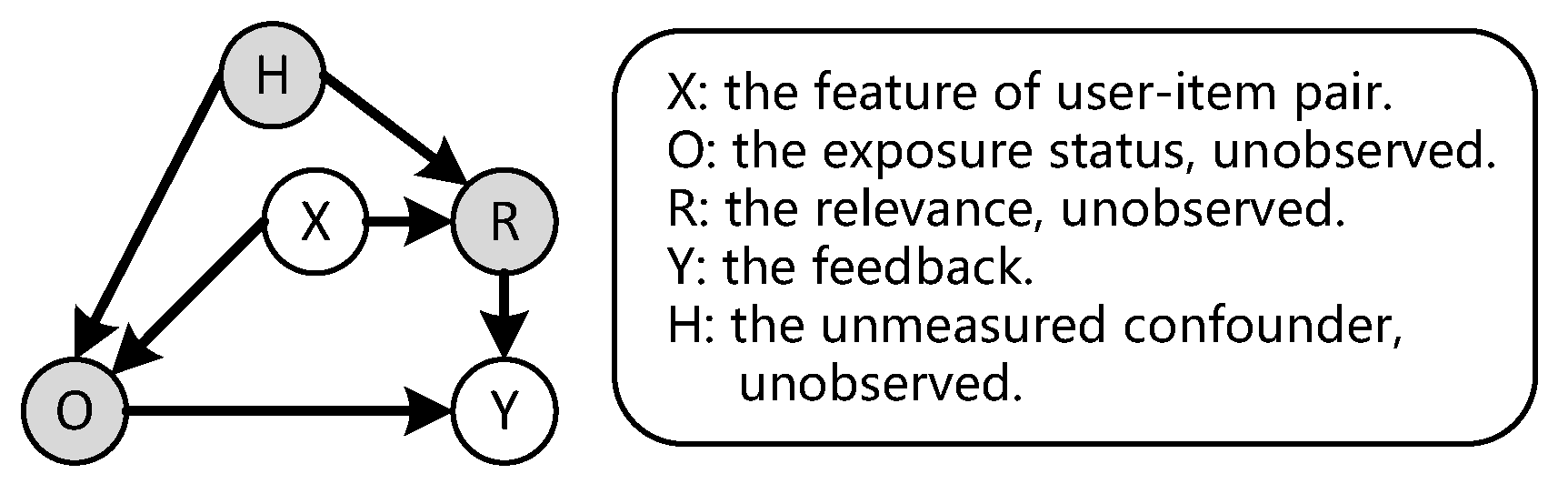 - Zhou, C.; Li, H.; Yao, L.; Gong, M. Counterfactual implicit feedback modeling. In Proceedings of the Thirty-Ninth Annual Conference on Neural Information Processing Systems, San Diego, CA, USA, 30 November–7 December 2025. [Google Scholar]