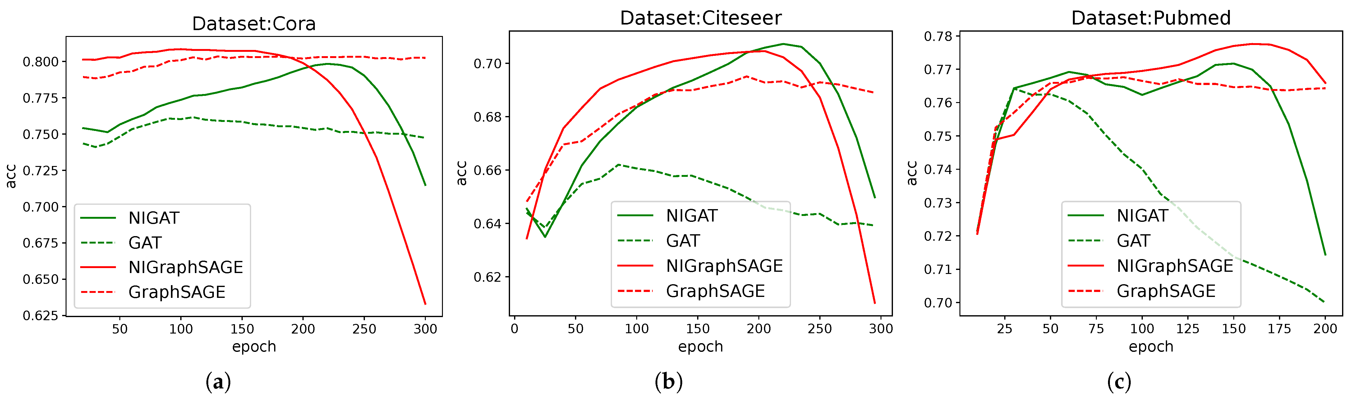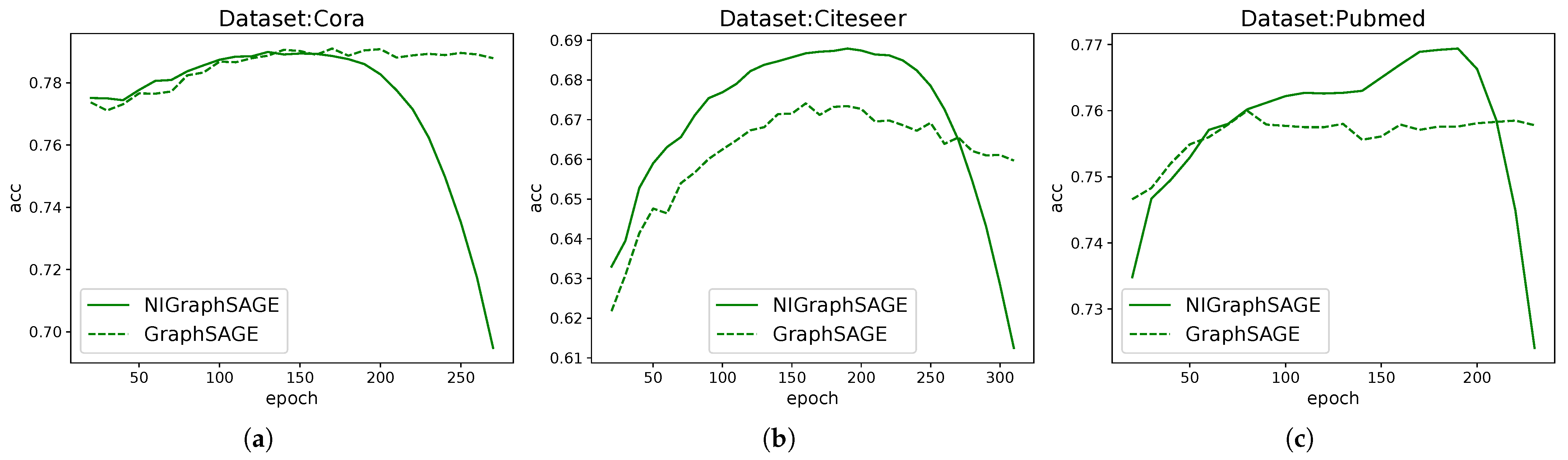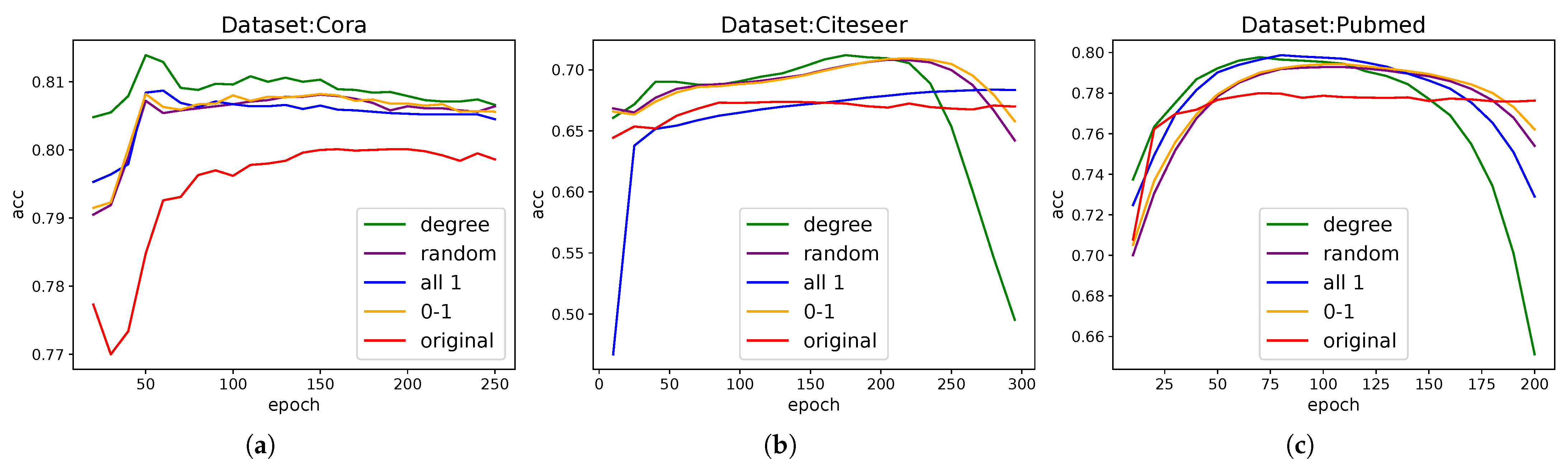 Because it contains learnable parameters, this network is vulnerable to overfitting. Consequently, its training necessitates an early stopping strategy. Overfitting arises because the new layers and parameters are continually optimized. Since the forward-propagated information is independent of the graph structure and the back-propagated information is low order, an excessive amount of this low-order information is fed back into the graph neural network’s parameters. This ultimately degrades the network’s capacity to recognize global information.