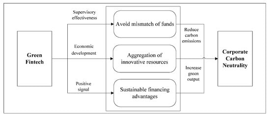 Therefore, green fintech promotes the efficient allocation of financial resources, leading to increased green output and reduced carbon emissions for enterprises, thereby exerting a positive impact on corporate carbon neutrality, as illustrated in Figure 1. Based on the above analysis, the following hypothesis is proposed: